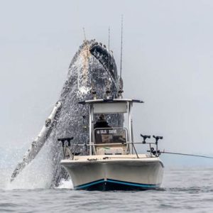 Once-In-A-Lifetime Footage Of A Massive Humpback Whale Leaping Out Of The Water Next To A Fishing Boat