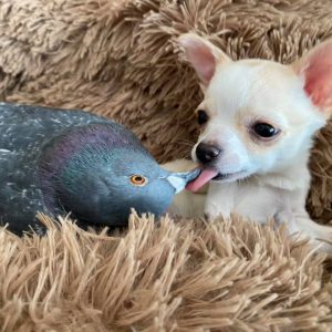 Pigeon That Can’t Fly And Puppy That Can’t Walk Form An Incredibly Beautiful Friendship In Shelter