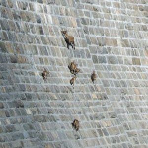The death-defying goats that don’t give a dam! Animals scale Italian lake’s near-vertical barrier to lick stones for their minerals
