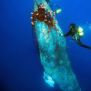 Heart-pounding underwater rescue of a 12-meter-long humpback whale caught in an illegal drift net off the Balearic island.