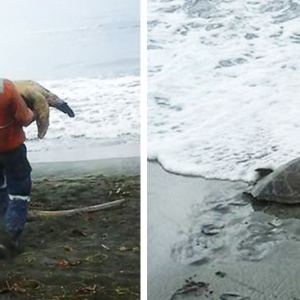 Two lovely sea turtles meant to end up as a fine meal in Papua New Guinea were luckily spared. Arron Culling and his co-worker Mark bought them from a local…