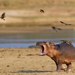 “I’m Not Kidding”, Baby Hippo Yells Out For Help After A Bird Flock Land On Its Back