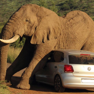 An elephant had an itch it just had to scratch – on a car enjoying a South African safari. The VW Polo and its two terrified occupants found itself in…