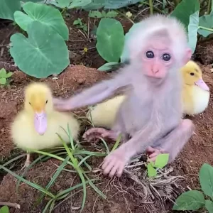 Sweet Baby Monkey Loves Looking After His Own Little Family Of Ducklings